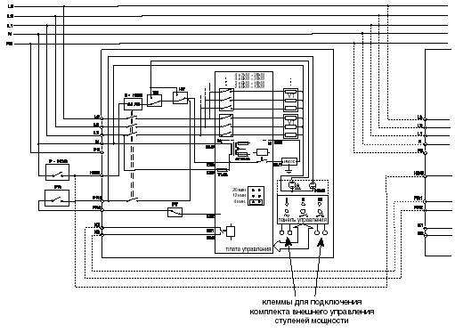 Электрическая схема подключения двух котлов в каскадГлавная / Котлы / Электрический котел СКАТ 6 – 28 кВт / Электрическая схема подключения двух котлов в каскад